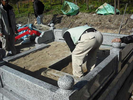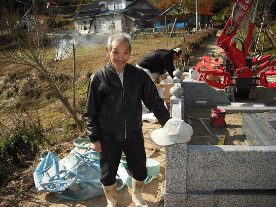 墓石建立をご依頼頂きました細田様も建立工事にお立ち会いになりとても喜んで頂きました。