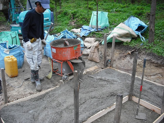 担当の職人も無事 細田様の建立工事を終え、一安心の笑顔です。